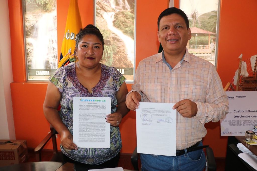 Zamora. Manuel González, alcalde del cantón Zamora, y Angélica Tocto, presidenta de Sabanilla, el reciente este miércoles firmaron el convenio de cooperación interinstitucional para la ejecución del proyecto denominado “Servicio de Transporte estudiantil a niños, niñas y jóvenes de la parroquia Sabanilla”.